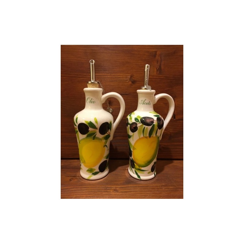 Öl - Essig mit Griffen, Flasche nach italienischer Keramik hergestellt und handbemalt, aus ungiftigen Materialien und bleifreien Farben, lebensmittelecht und spülmaschinenfest.